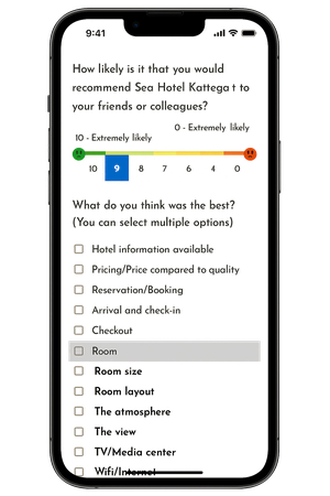 • It’s faster and simpler for guests: just one smart follow-up question after NPS, instead of multiple scales to rate.